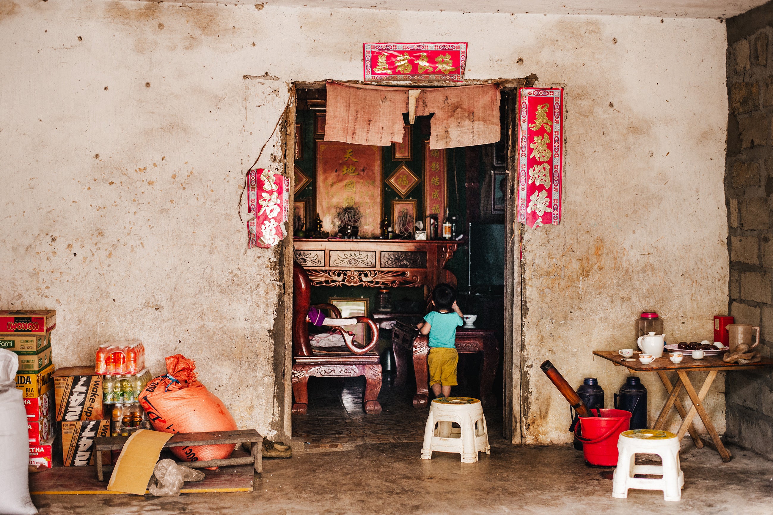 Het noorden van Vietnam, vlak bij de grens met buurland China, is op sommige plekken nog erg onontwikkeld. Huisjes als deze kom je overal tegen in de vele kleine dorpjes wanneer je door de regio reist. Een uitzonderlijk decor van fraaie chaos.