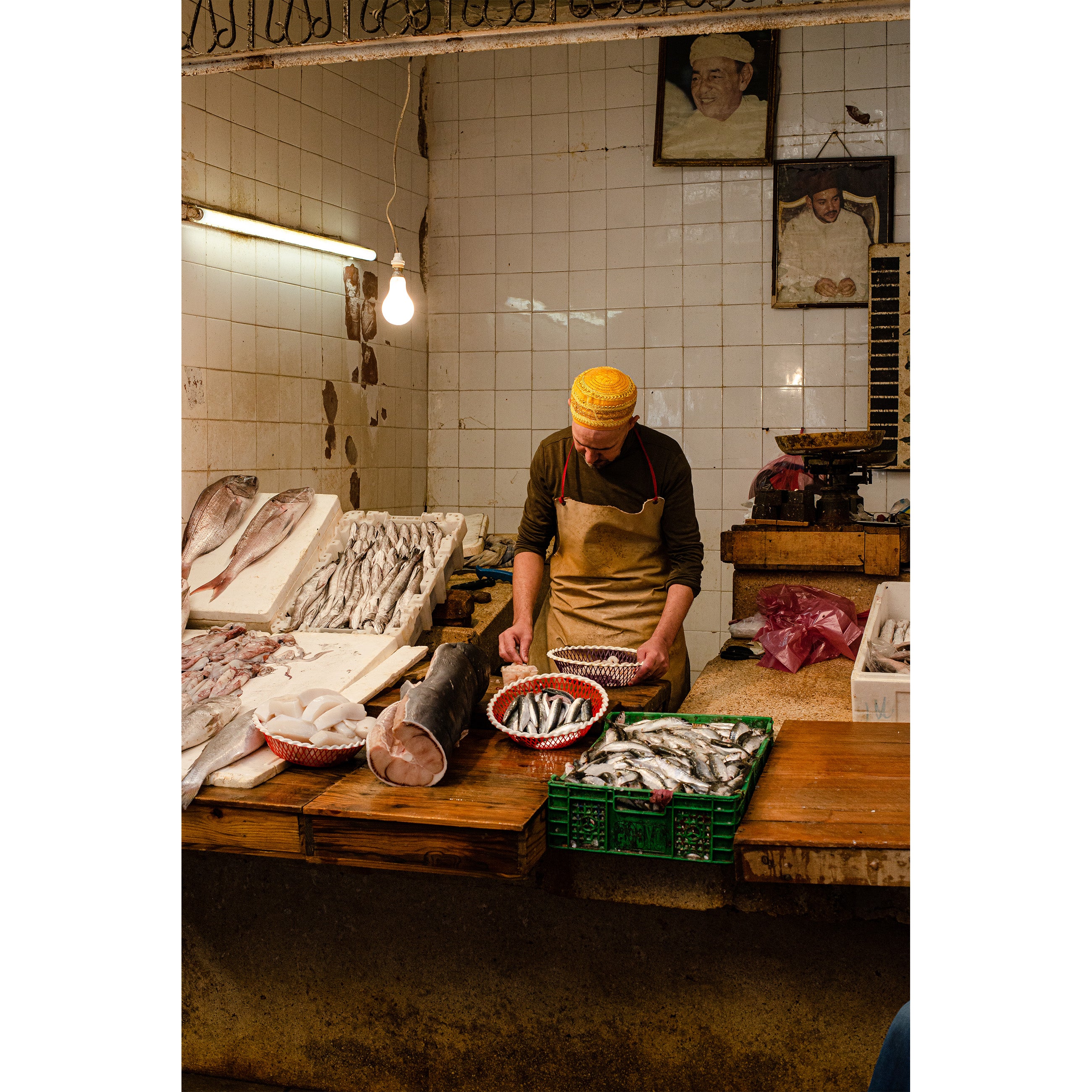 Vissen van groot tot klein gaan als warme broodjes over de toonbank en worden gebruikt voor in de meest heerlijke oven- stoof en barbecuegerechten. En, niet te vergeten, in de befaamde tajines.